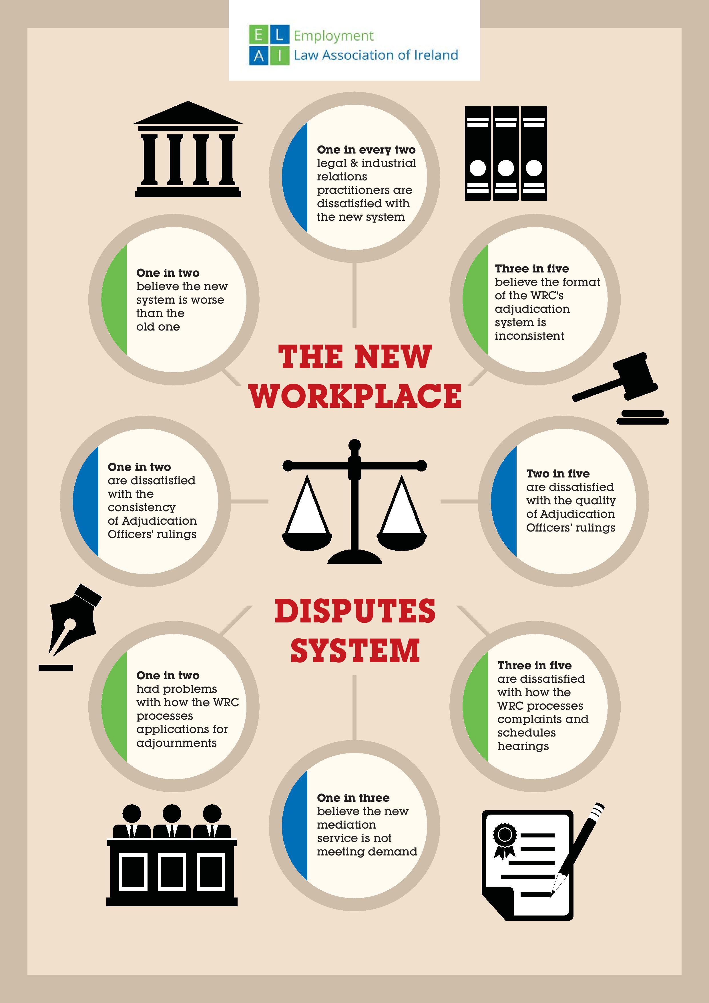 A survey of employment law and industrial relations practitioners by the Employment Law Association of Ireland on the two-tier workplace disputes system introduced last year by the Workplace Relations Act 2015 has identified significant problems with aspects of how the Workplace Relations Commission is operating.